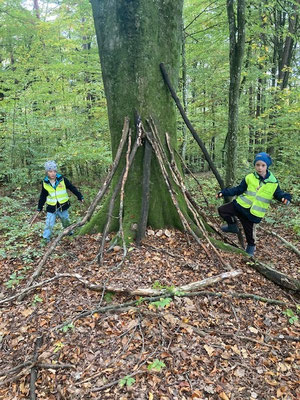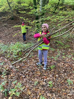 Am Waldtag der Klasse 1a gab es viel zu entdecken! Gemeinsam erkundeten die Kinder den Wald und erlebten die Natur mit allen Sinnen. Bei verschiedenen Spielen wurde gelaufen, gelacht und gestaunt. Besonders viel Freude machte das Bauen von kleinen Behausungen aus Ästen, Blättern und Moos. Dabei waren Teamarbeit und Kreativität gefragt! Die Kinder lernten viel Neues über Pflanzen, Tiere und das Leben im Wald – und hatten dabei jede Menge Spaß. Ein schöner Tag, der uns allen noch lange in Erinnerung bleiben wird.