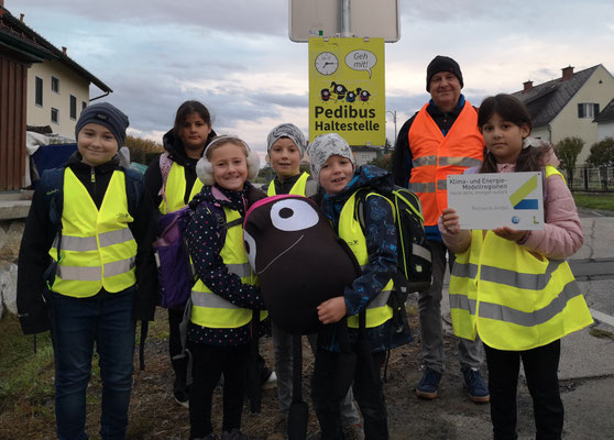 Sind Ihnen die grünen Tafeln in der Ungarnstraße aufgefallen? „Pedibus-Haltestelle“ steht darauf zu lesen. Montag Früh ging es los. Sieben Kinder sind mit dem „Bus auf Füßen“ unterwegs. „Busfahrer“ ist Edi Aicher. Er begleitet die Gehgemeinschaft. Seine Motivation? Seit er in Pension ist, hat er Zeit und engagiert sich für sinnvolle Projekte. „Und so ein Spaziergang in der Früh tut jedem gut,“ ergänzt er, „nicht wahr?