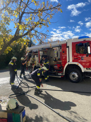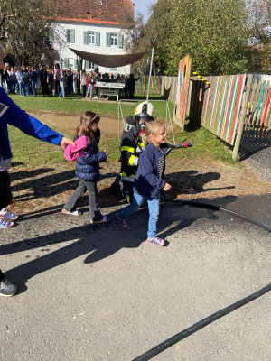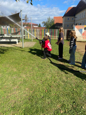 Am Dienstag, dem 07.10.2025 fand um 10:30 Uhr eine Räumungsübung an der Volksschule Fehring statt. Dabei wurde im Schulgebäude eine Rauchentwicklung simuliert, um einen realistischen Einsatz darzustellen. Alle SchülerInnen und das gesamte Lehrpersonal versammelten sich innerhalb kürzester Zeit auf dem Sammelplatz vor der Schule. Im Anschluss durften die Kinder mit dem großen Strahlrohr spritzen. Zum Abschluss spritzte ein Feuerwehrmann mit dem Wasserstrahl den Ball von der Spitze des Birnbaumes herunter – ein echtes Highlight für die Kinder! Ein großes Dankeschön an das Team der Freiwilligen Feuerwehr für diese gelungene und interessante Feuerwehrübung.