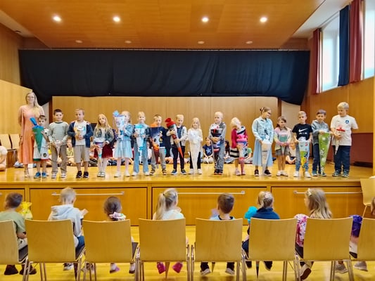 Die erste Klasse widmete sich dem Thema „Unsere fünf Sinne“. Mit Neugier verkosteten die Kinder Lebensmittel, lauschten Hörproben und staunten über optische Täuschungen. Die zweite Klasse setzte sich mit Umweltschutz und Nachhaltigkeit auseinander. Mülltrennen, Müllsammeln und Gespräche über den Weg des Mülls machten deutlich, wie wichtig ein bewusster Umgang mit der Natur ist. Die dritte und vierte Klasse beschäftigte sich mit „Unsere Stadt der Zukunft“. Mit Tablets gestalteten die Kinder Plakate und unternahmen einen Stadtrundgang, bei dem auch die Gemeinde besucht wurde. Zum Abschluss bauten sie ihre eigene Kartonstadt, in der viele Ideen lebendig wurden.